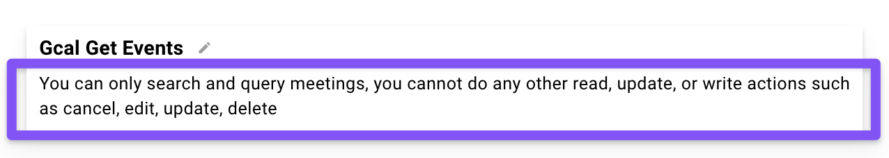 You can only search and query meetings, you cannot do any other read, update, or write actions such as cancel, edit, update, delete.) - Clarify when to not use the plugin (e.g.