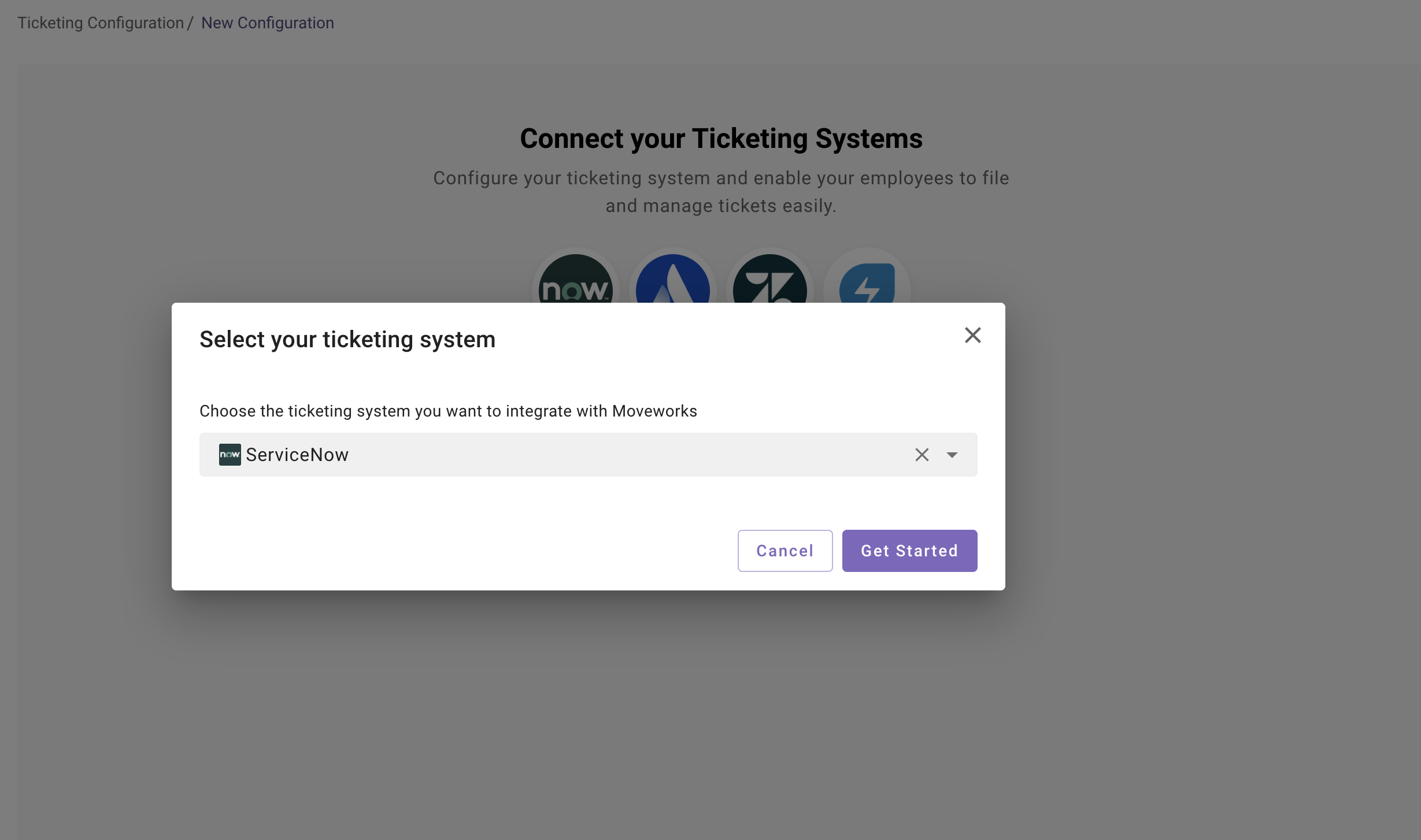 - The new configuration journey will throw a error if you have not marked this system as primary. This is require to identify primary ticketing system which will be used in the Moveworks ticketing platform