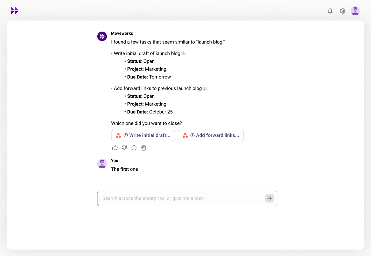 - I.e.: "This integration allows Moveworks/ (or assistant name) to look up and edit data within Salesforce.