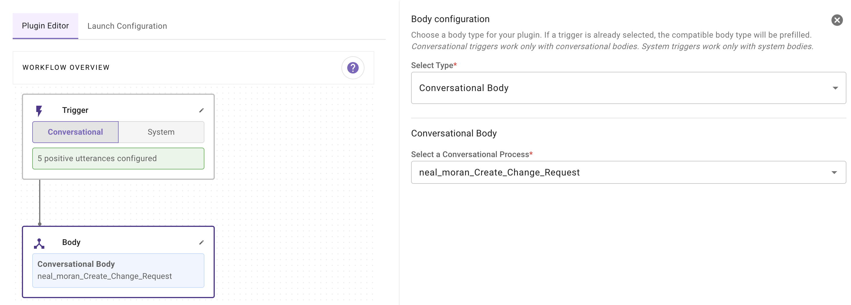 Now select “Conversational Body" in the "Body" block, and reference your Conversational Process you just created. Be sure to choose "Conversational Body" as well.