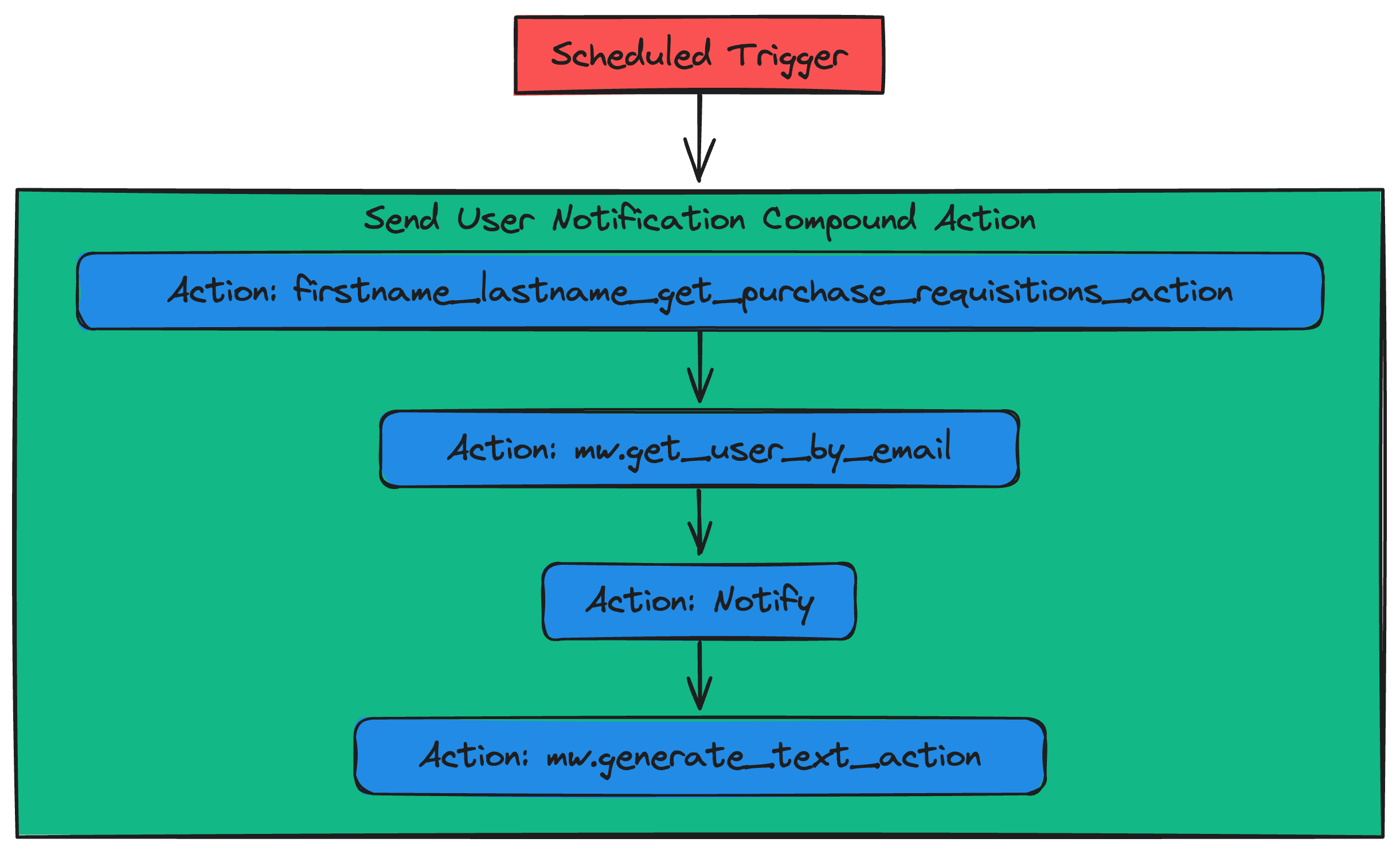 and the Notify expression. - Configure a Scheduled Trigger to run a Compound Action on a defined cadence