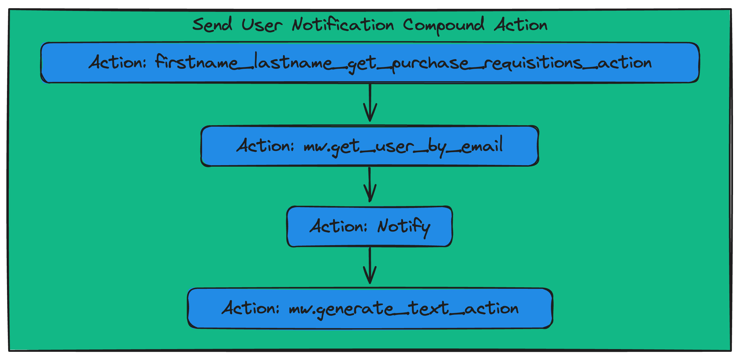 This Compound Action executes four actions in sequence, with the output of one step feeding into the next: