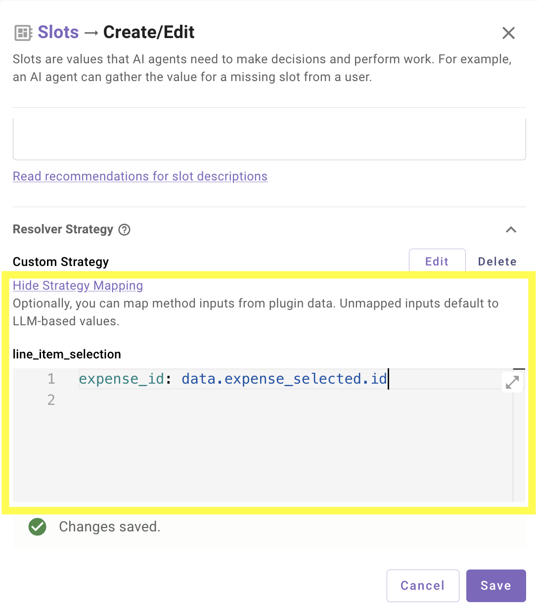 - Any data you pass into a resolver via the strategy mapping must either be collected already (if a slot) or the associated activity from the conversational process has already been completed.