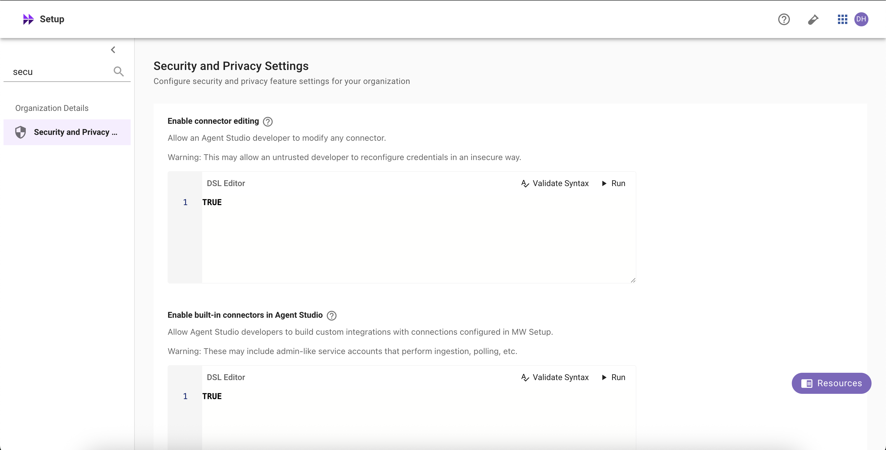 Use this page in Moveworks Setup → Security & Privacy to configure powerful, org-wide controls for Agent Studio. These settings are intended for Super Admins.