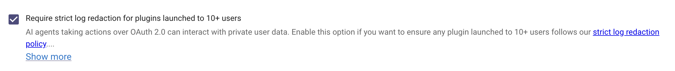 Control whether developers can see raw user content in logs for publicly launched plugins.
