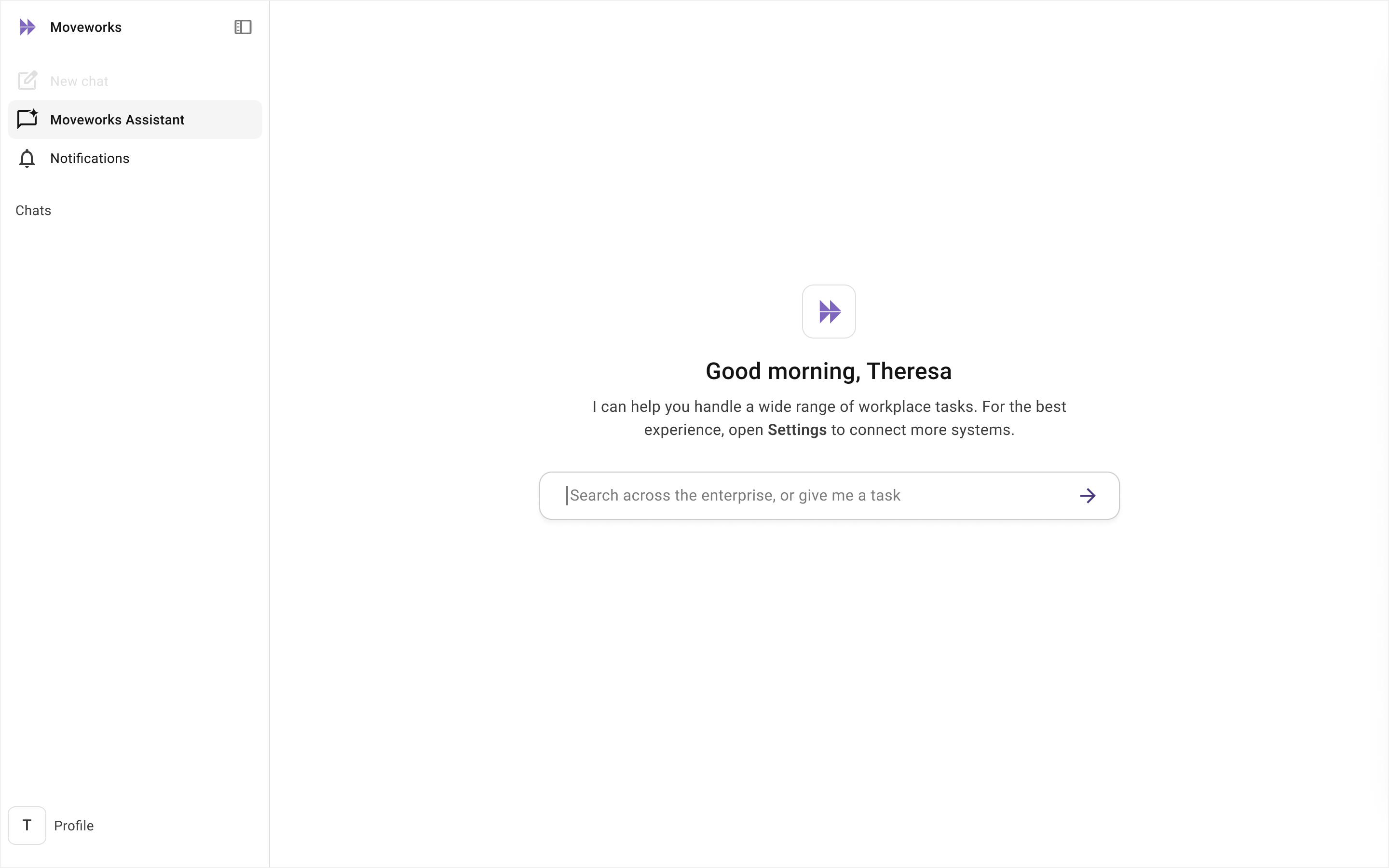 Before getting started, make sure your organization has completed the Configuration steps. Only employees who have been assigned the My Moveworks app (or your organization’s equivalent app name) through SSO will be able to access the Assistant on Web.